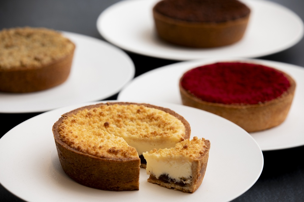 ベイクドでありながら柔らかく口どけのよいチーズ生地にサクサクのカソナードクランブルを重ね、タルト生地にはパルメザンチーズを練り込みチーズの香りを際立たせました。